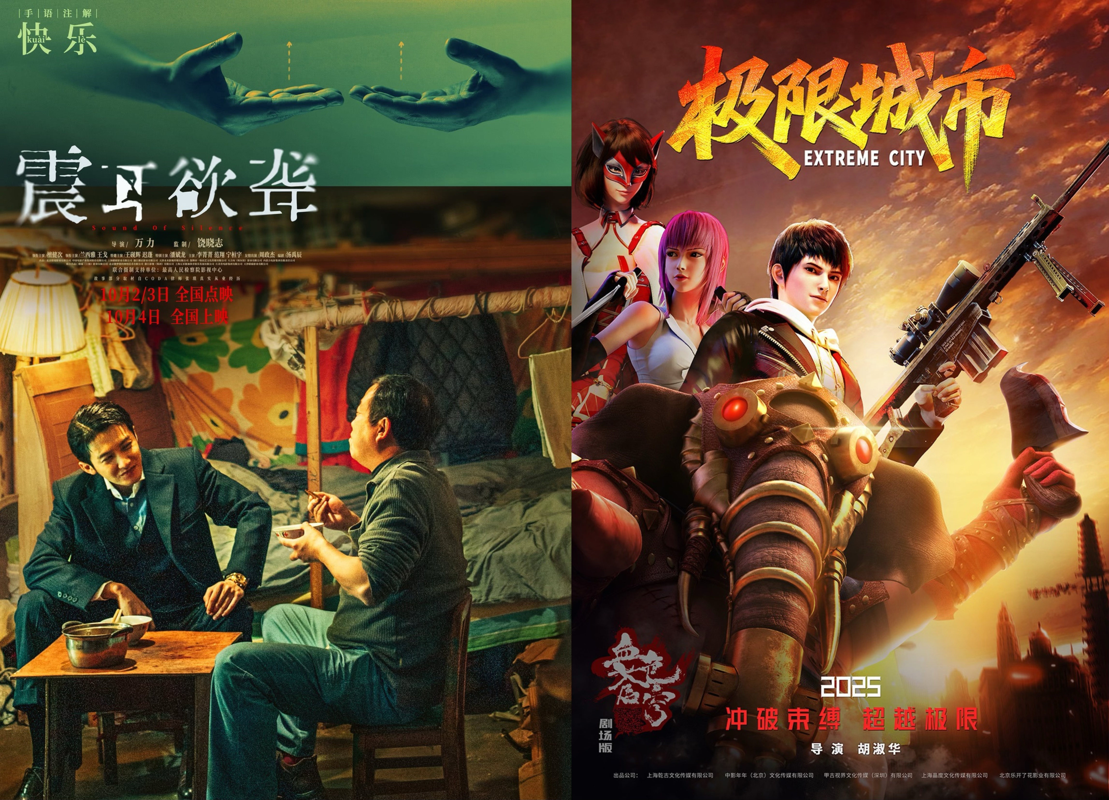 今天,剧情片《震耳欲聋》和动画悬疑片《极限城市》两部新片上映。目前2025年国庆档已有多部新片上映,电影种类丰富且精彩纷呈,涵盖历史战争、奇幻冒险、家庭喜剧等。